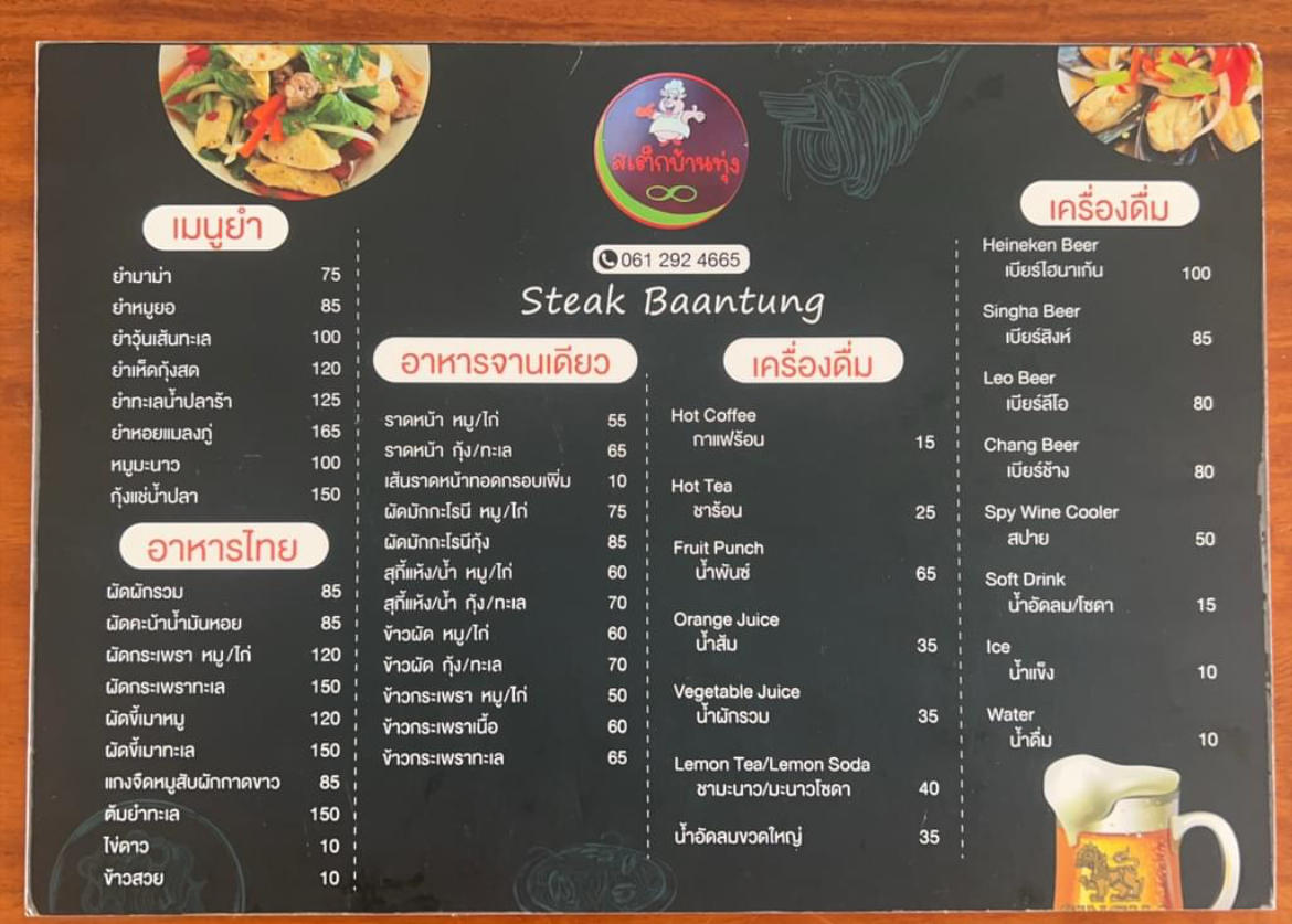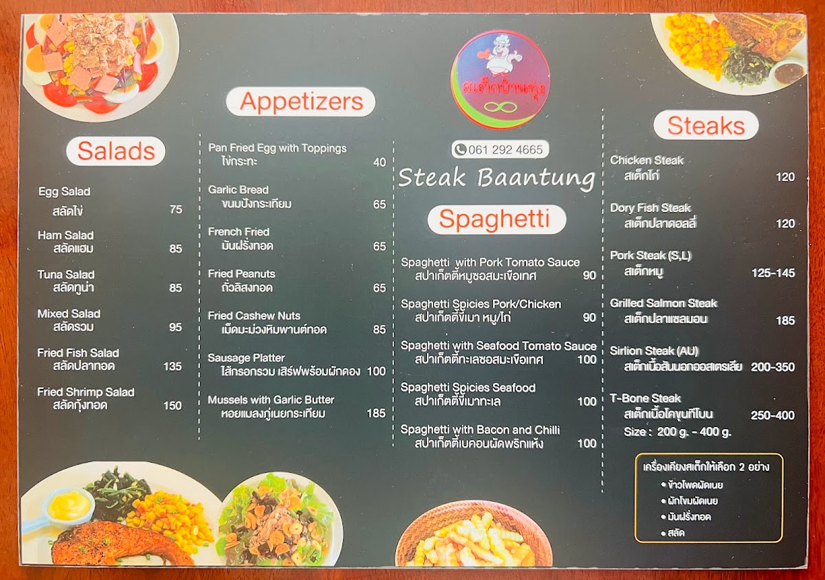 As you dine, enjoy the breezy ambiance that sets the perfect backdrop for a relaxed meal. Whether you're a local or just passing through, Steak Baantung promises a satisfying culinary experience that brings together quality, taste, and affordability—all savored in an unpretentious setting.